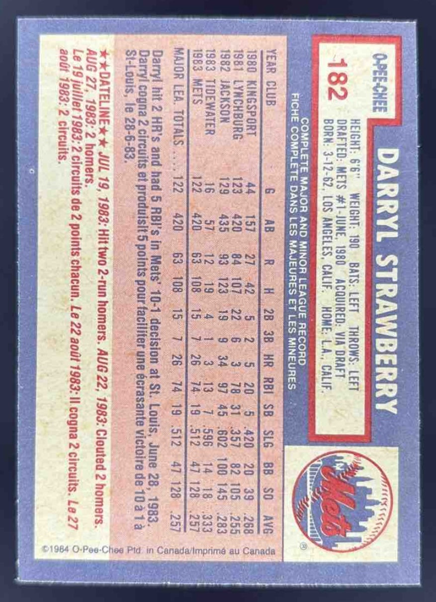 1984 O-Pee-Chee #182 Darryl Strawberry RC