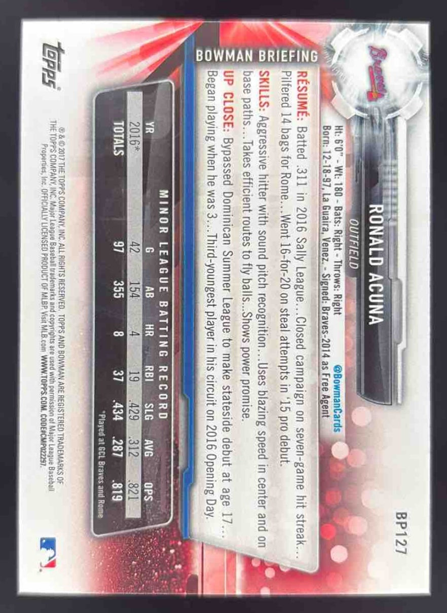 2017 Bowman Prospects #BP127 Ronald Acuna RC