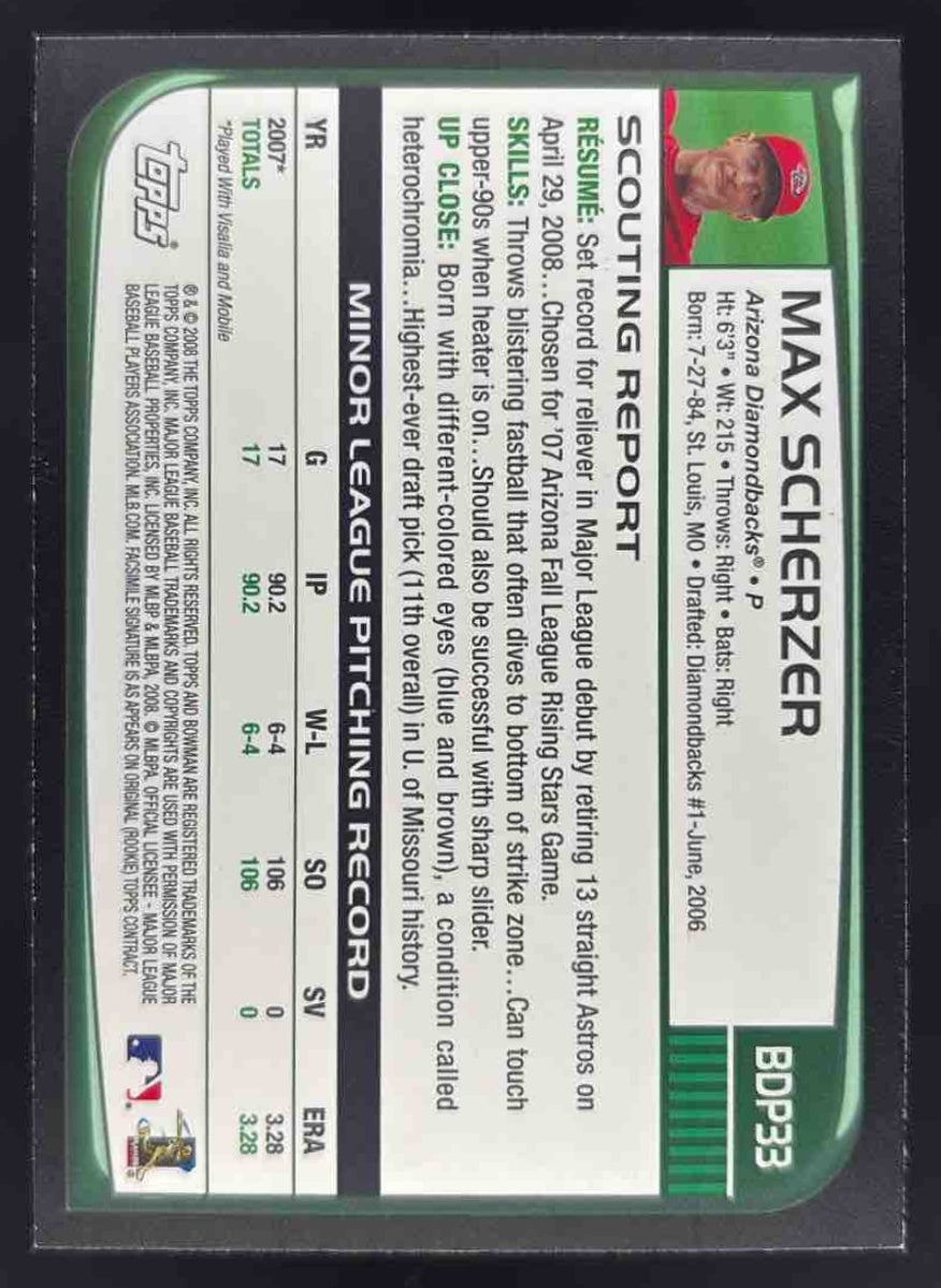 2008 Bowman Draft Picks & Prospects #BDP33 Max Scherzer RC