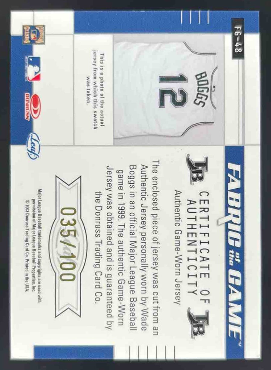 2003 Leaf Certified Materials Fabric of the Game #FG-48 Wade Boggs /100