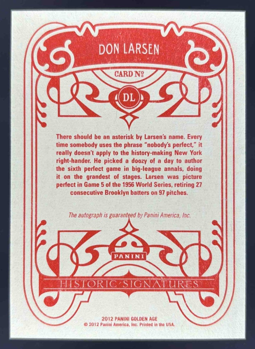 2012 Panini Golden Age Historic Signatures #DL Don Larsen Autograph Auto