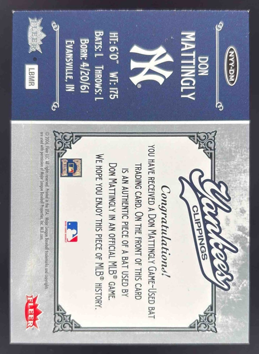 2006 Fleer Greats of the Game Yankee Clippings Bat #NYY-DM Don Mattingly