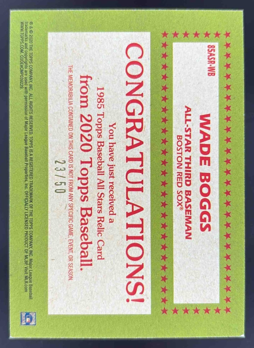 2020 Topps 1985 35th Anniversary All-Stars Relics Gold #85ASR-WB Wade Boggs /50