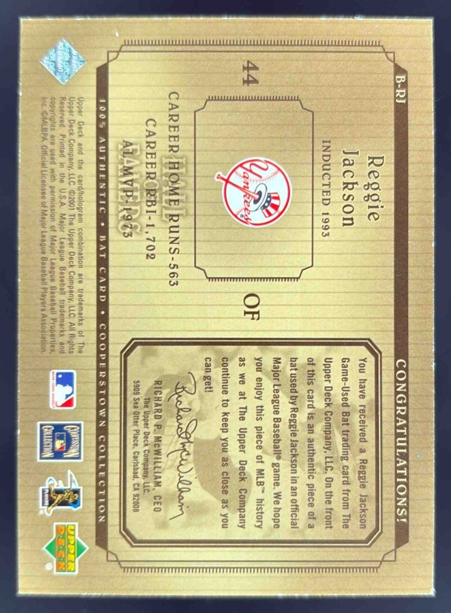 2001 Upper Deck Hall of Famers Game Used Bats #B-RJ Reggie Jackson