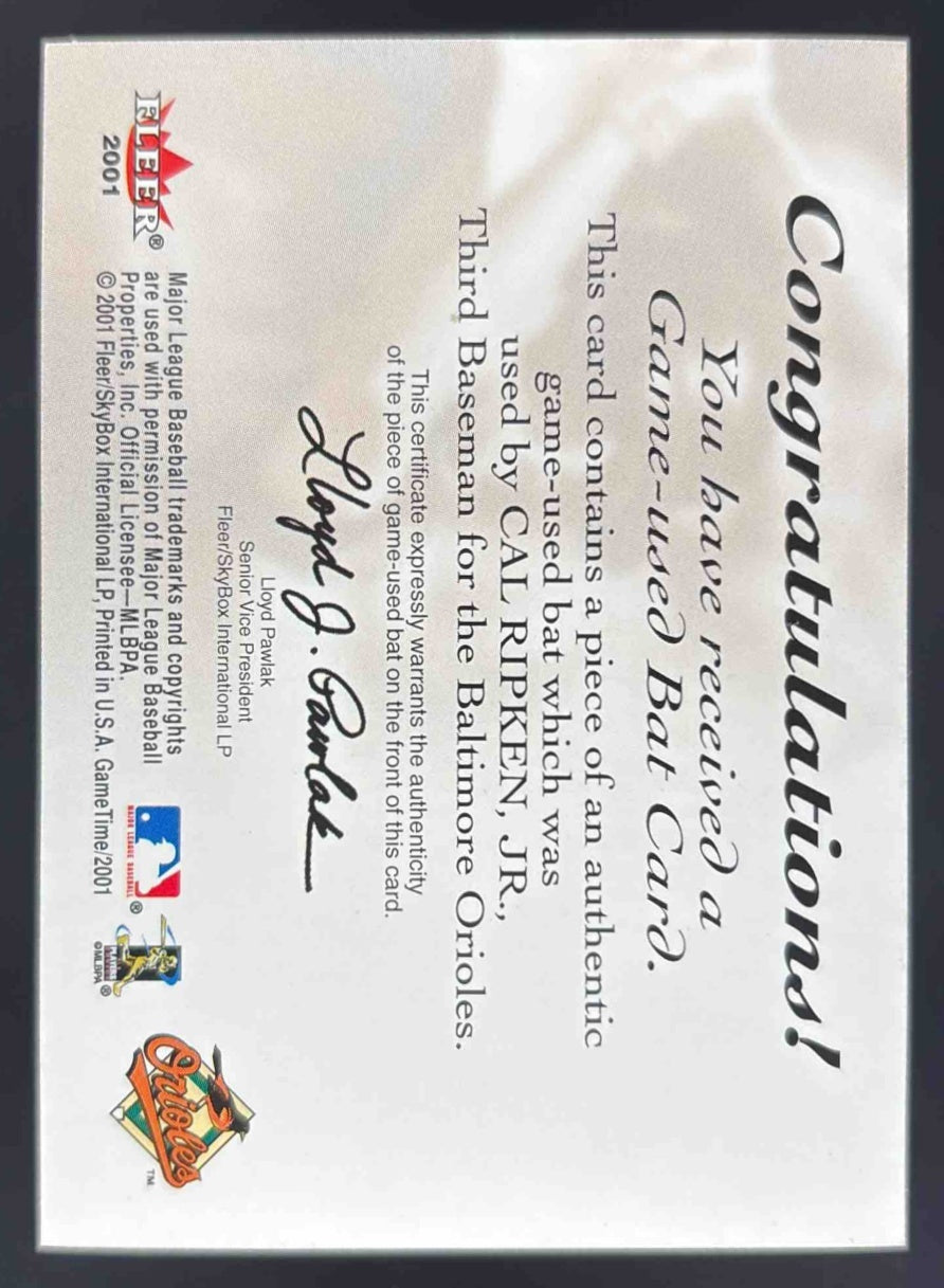 2001 Fleer Game Time Lumber #NNO Cal Ripken Jr.