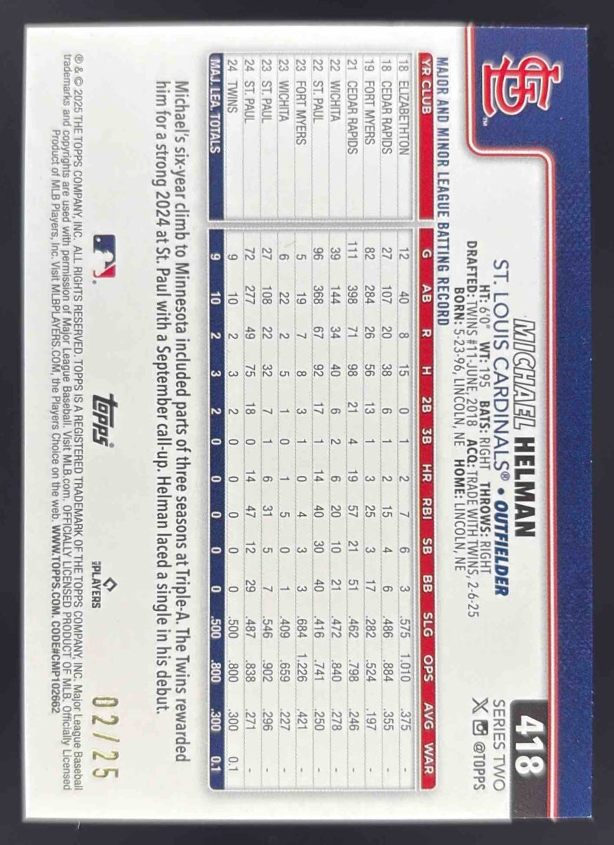 2025 Topps Holiday Beach Umbrella #418 Michael Helman RC /25