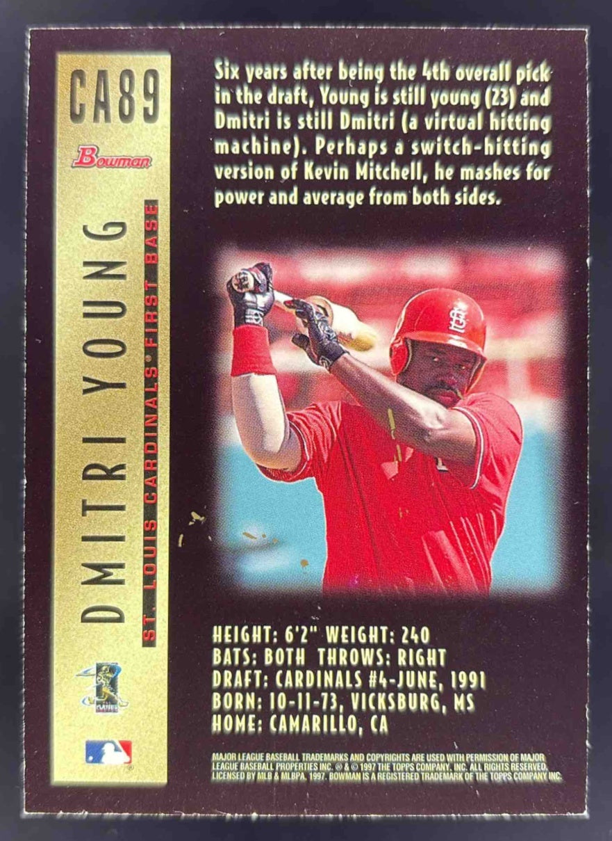 1997 Bowman Certified Autographs Gold Ink #CA89 Dmitri Young RC Auto