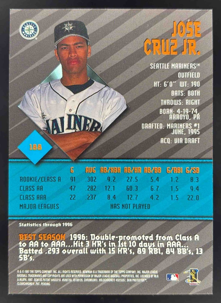 1997 Bowman Bowman's Best Certified Autographs #188 Jose Cruz Jr. RC Auto
