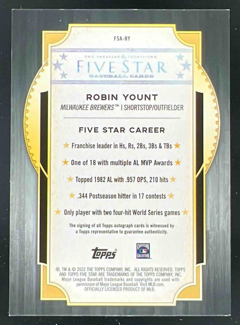 2022 Topps Five Star Aqua #FSA-RY Robin Yount Auto /75