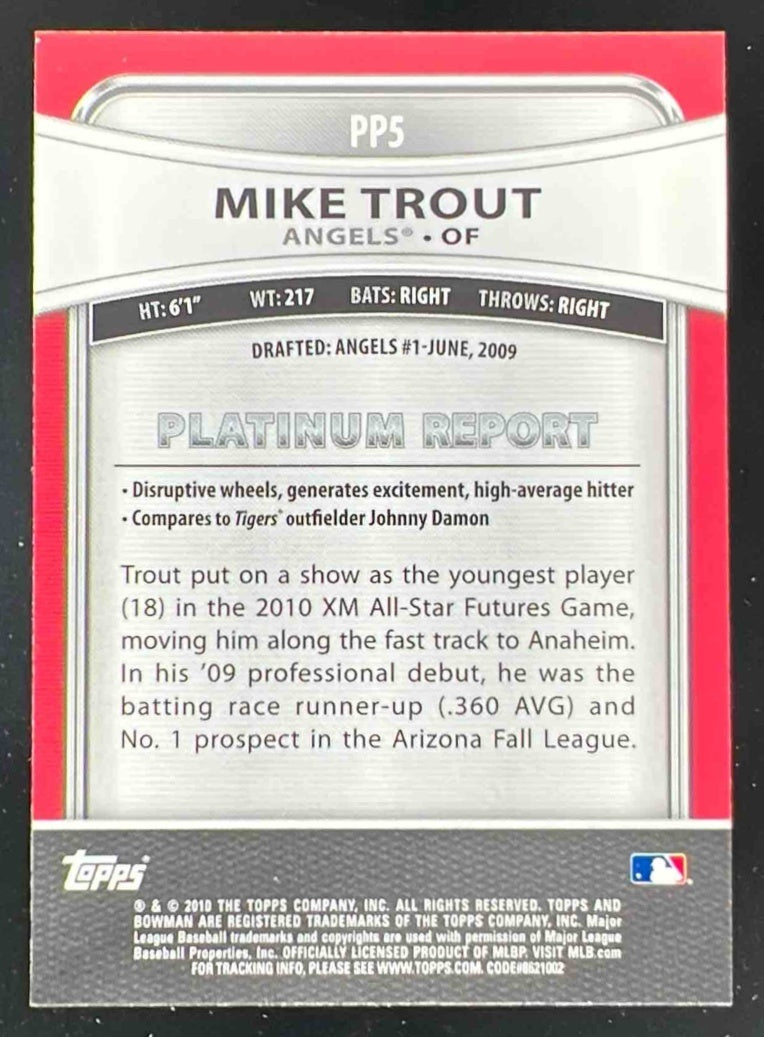 2010 Bowman Platinum Prospects #PP5 Mike Trout