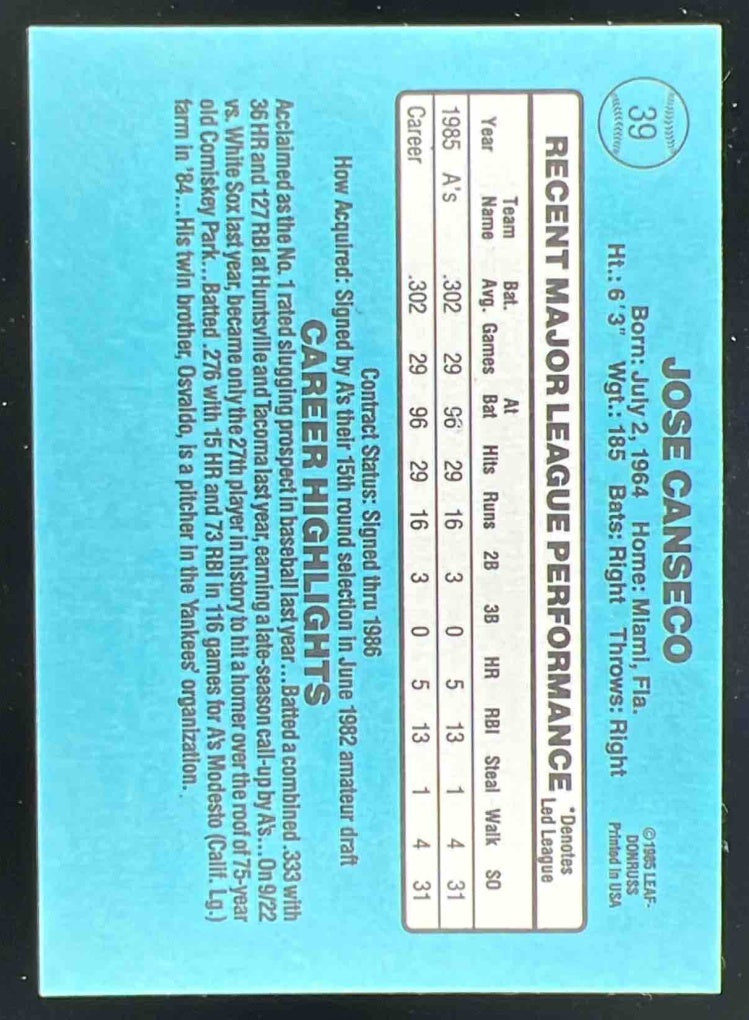 1986 Donruss #39 Jose Canseco RC