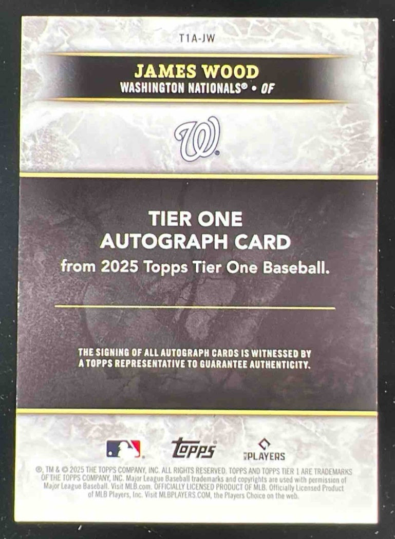 2025 Topps Tier One Tier One Autographs Blue Foil #T1A-JW James Wood RC Auto /75
