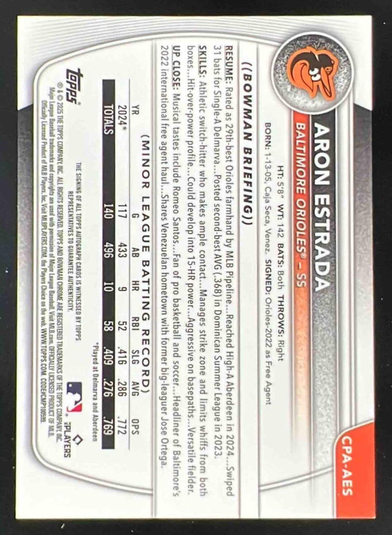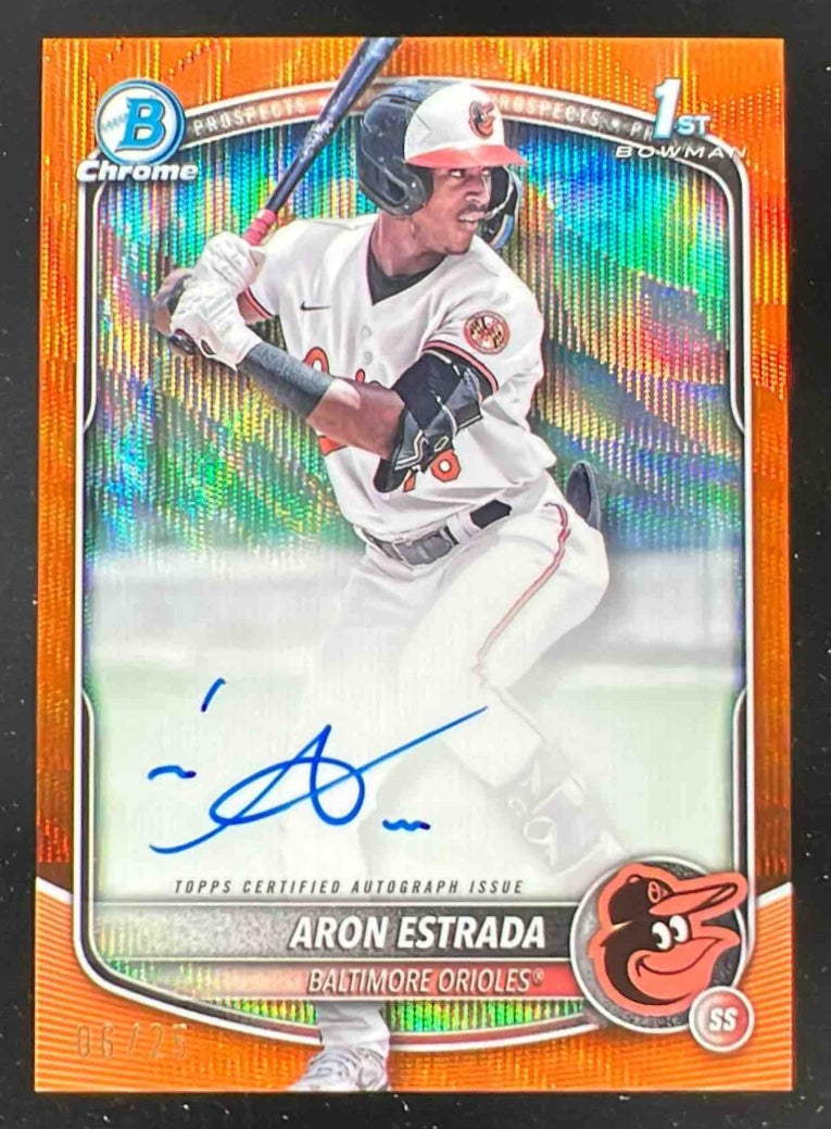 2025 Bowman Chrome Autographs Orange Wave #CPA-AES Aron Estrada RC Auto /25