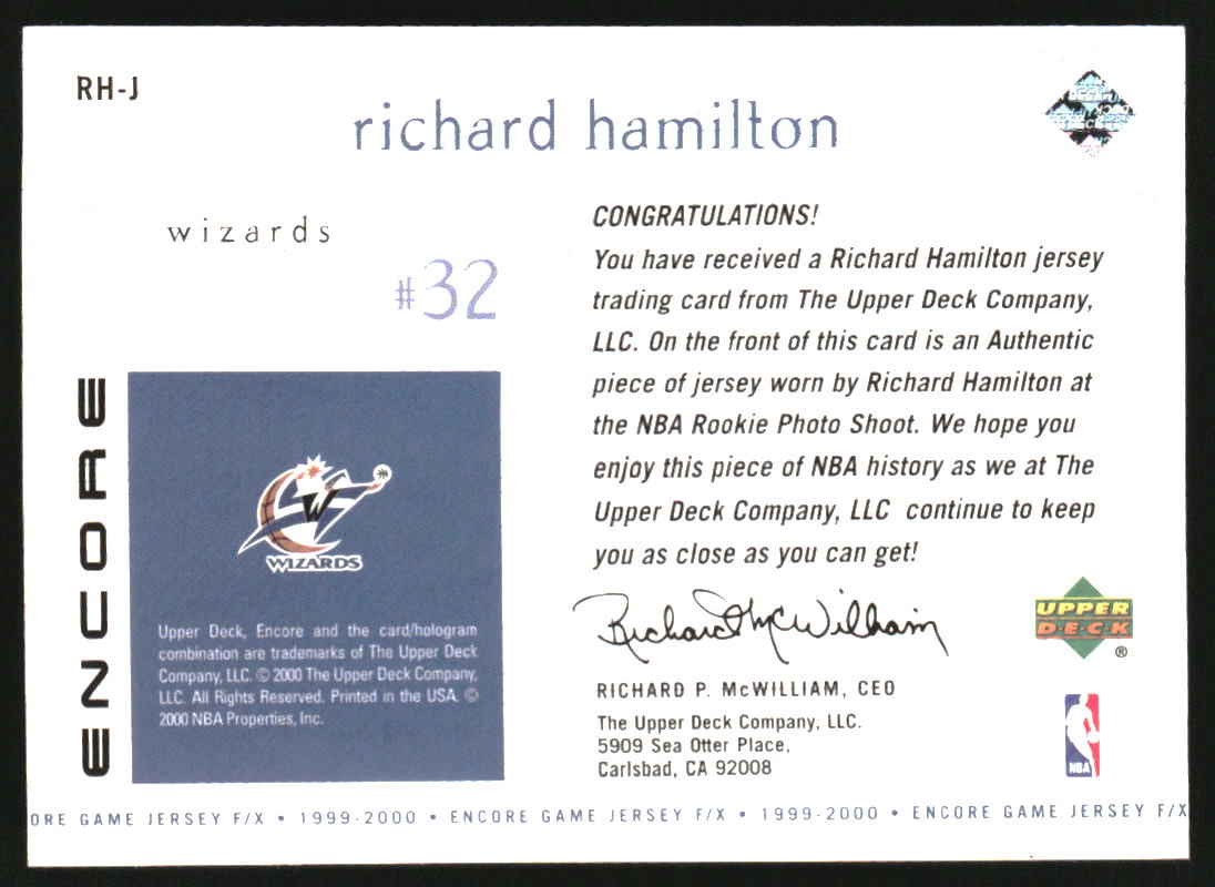 1999-00 Upper Deck Encore Game Jerseys #RHJ Richard Hamilton
