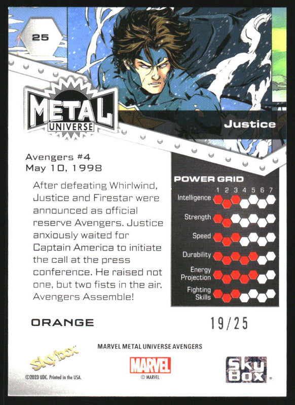 2024 SkyBox Marvel Metal Universe Avengers Orange FX #25 Justice /25