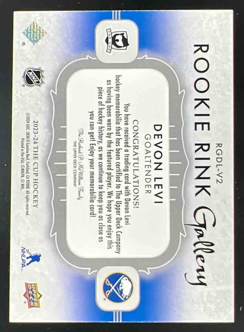 2023-24 The Cup Rookie Rink Gallery Patch #RGDL-V2 Devon Levi /35