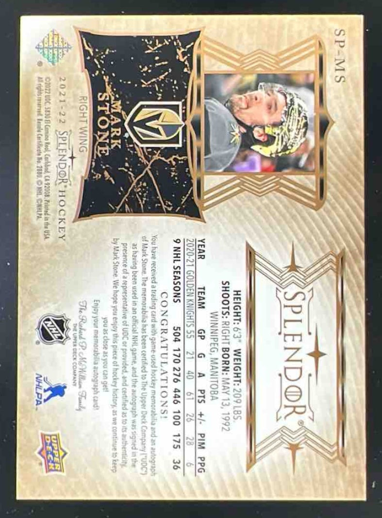 2021-22 Splendor #SP-MS Mark Stone Autograph Auto /36