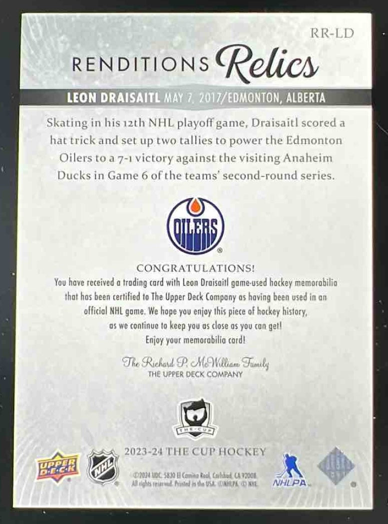 2023-24 The Cup Rendition Relics #RR-LD Leon Draisaitl MEM