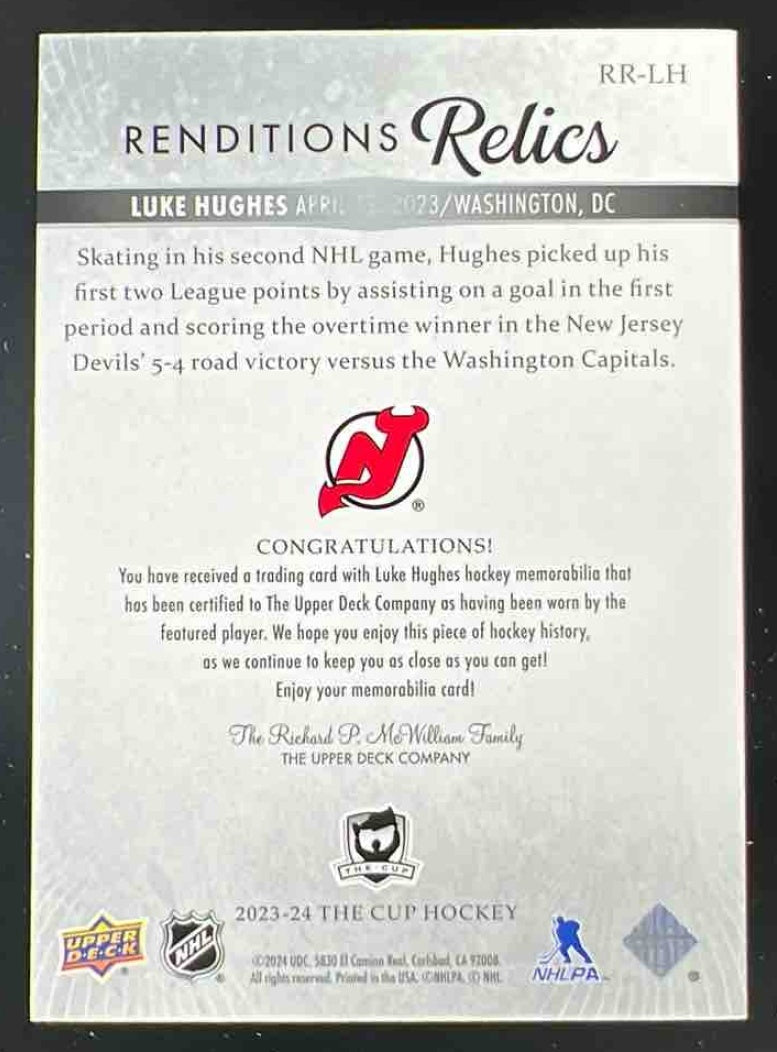 2023-24 The Cup Rendition Relics #RR-LH Luke Hughes