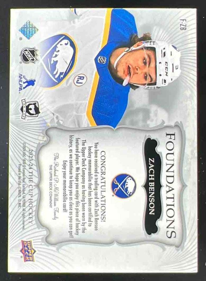 2023-24 The Cup Foundations Quad Jersey #F-ZB Zach Benson /99