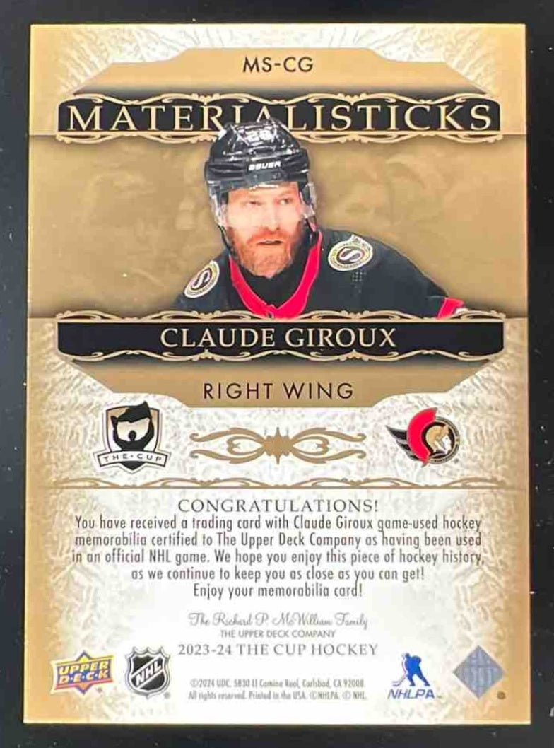 2023-24 The Cup Materialisticks #MS-CG Claude Giroux /25