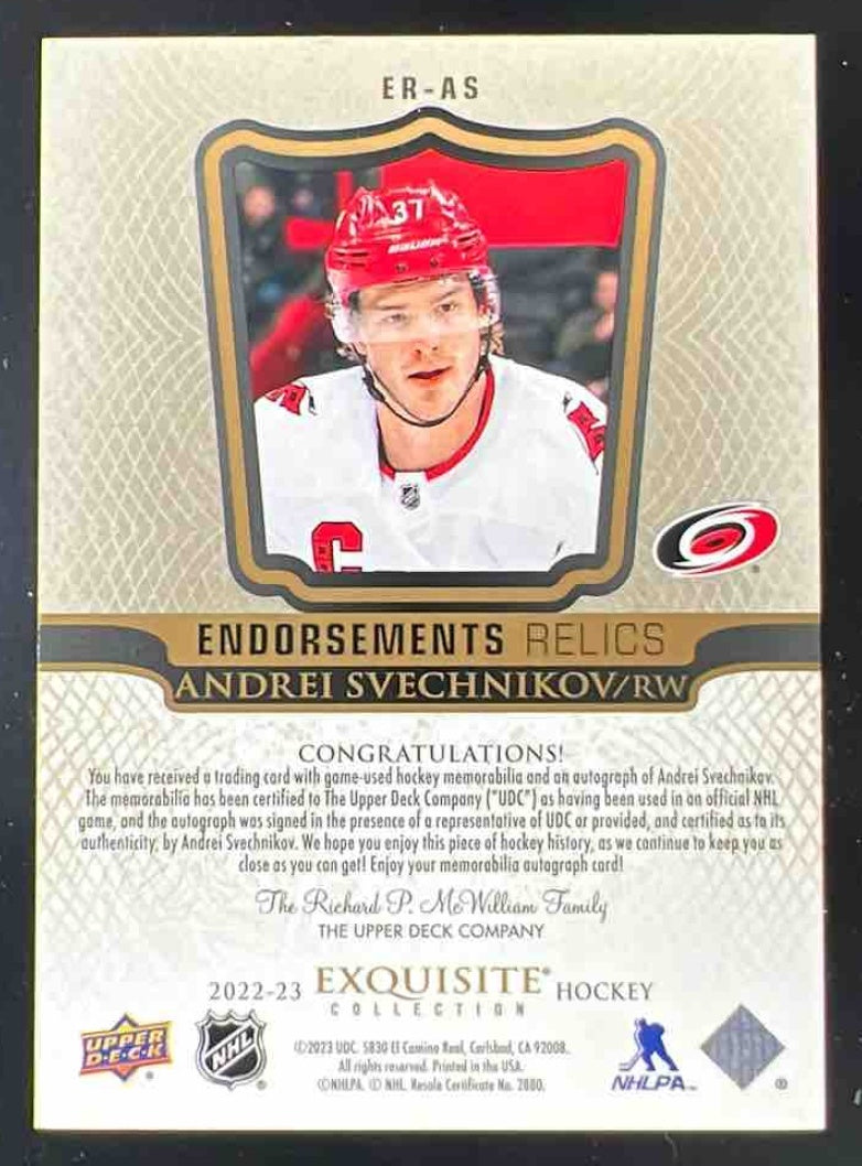 2022 Exquisite Collection Update Endorsements #ER-AS Andrei Svechnikov Auto /50