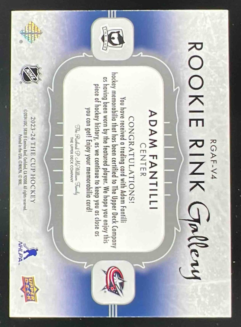 2023-24 The Cup Rookie Rink Gallery Jersey #RGAF-V4 Adam Fantilli /49