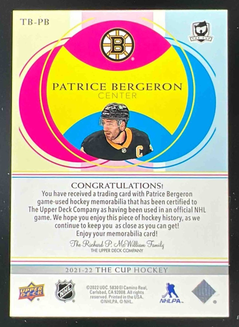 2021-22 Upper Deck The Cup The Basics Patch #TB-PB Patrice Bergeron /25