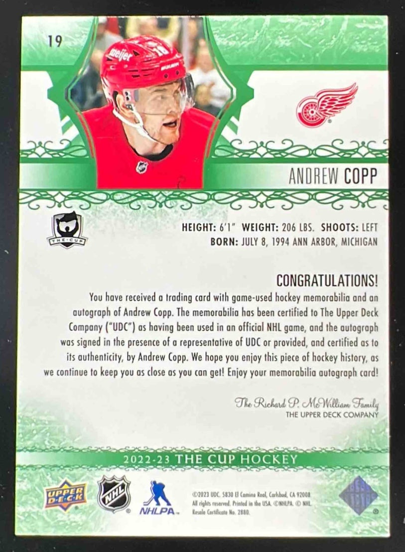 2022-23 The Cup Update Green Foil #19 Andrew Copp Autograph Auto /3