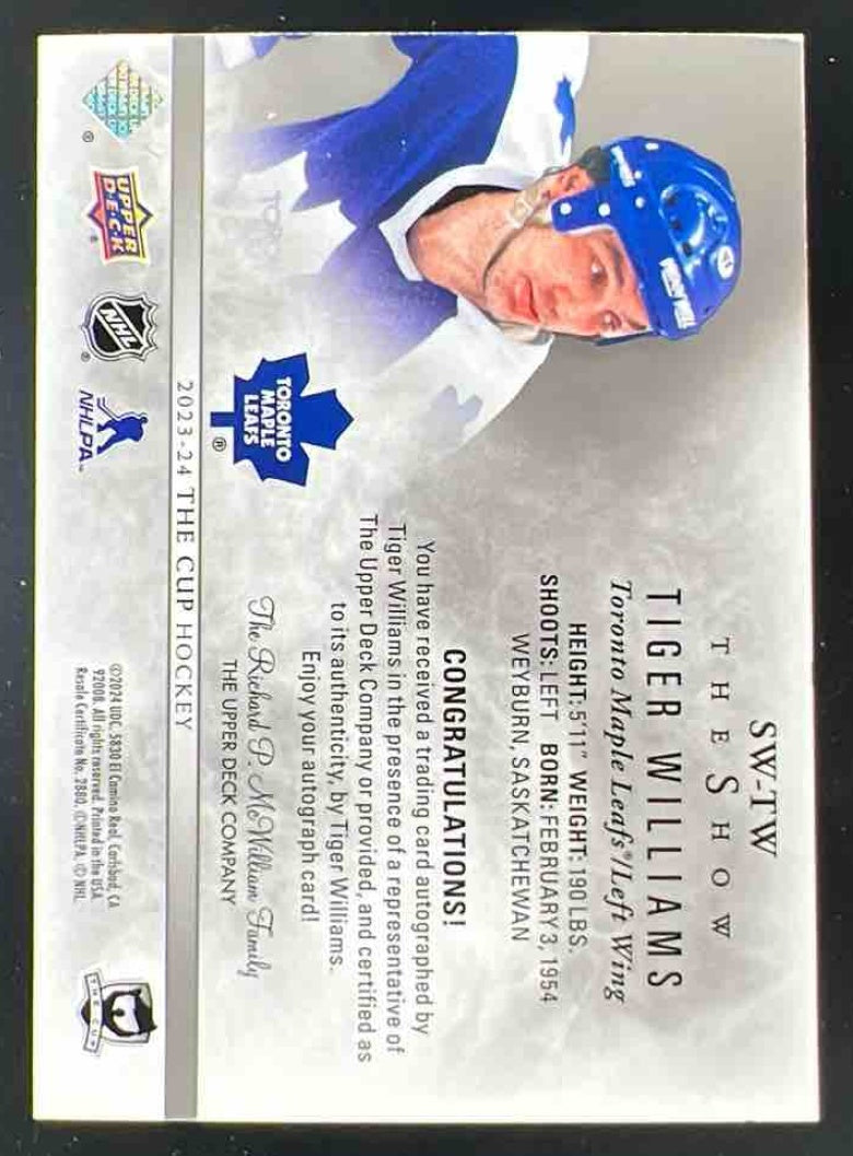 2023-24 The Cup The Show White Auto #SW-TW Tiger Williams Autograph Auto