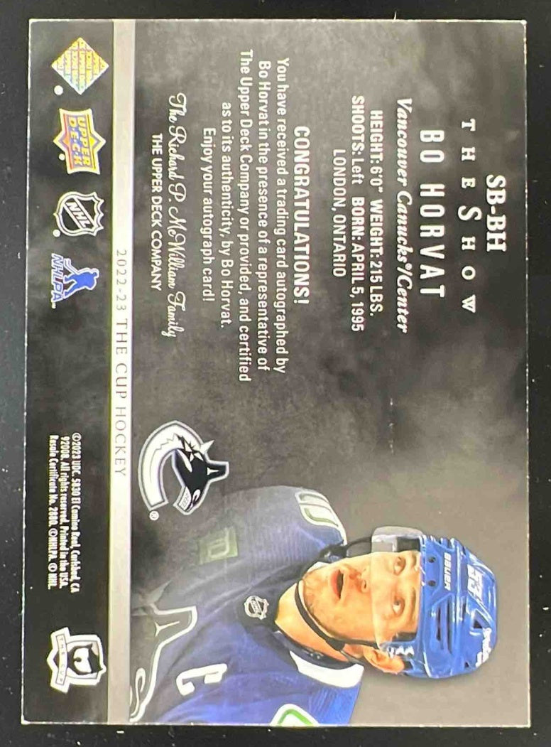 2022-23 The Cup Update The Show Auto Black #SB-BH Bo Horvat Autograph Auto