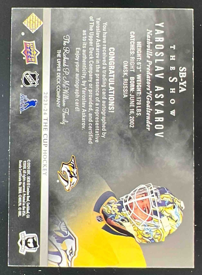 2023-24 The Cup The Show Black Auto #SB-YA Yaroslav Askarov Autograph Auto
