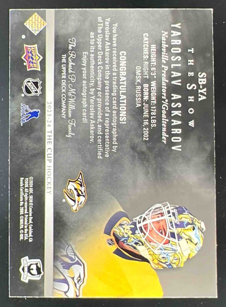 2023-24 The Cup The Show Black Auto #SB-YA Yaroslav Askarov Autograph Auto