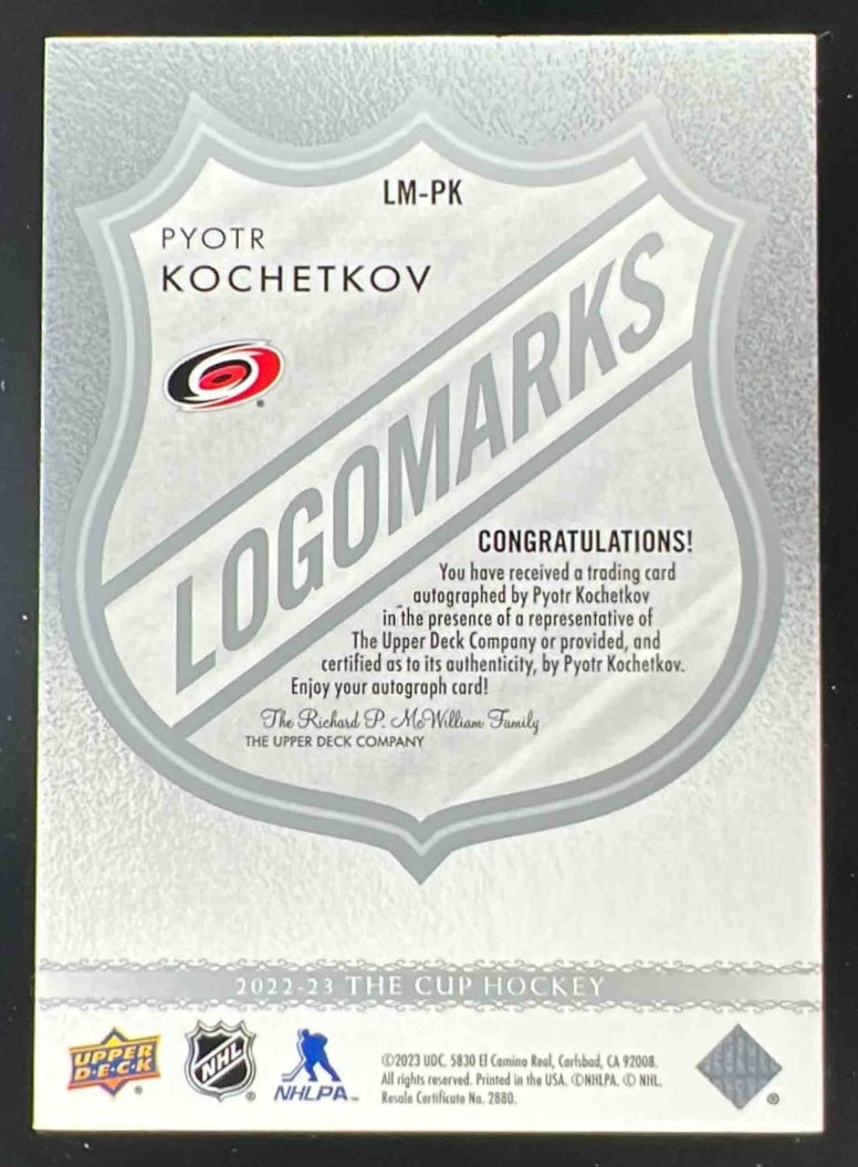 2022-23 The Cup Update LogoMarks Rookies #LM-PK Pyotr Kochetkov Autograph Auto