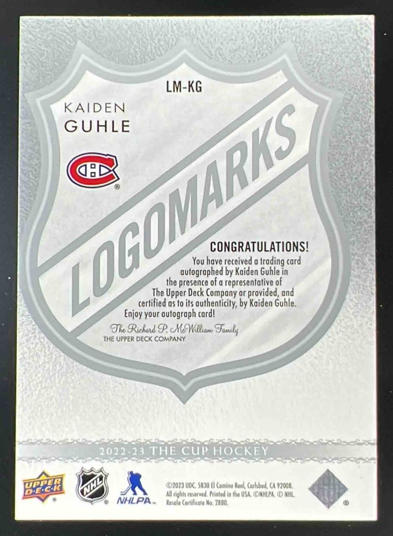 2022-23 The Cup Update LogoMarks Rookies #LM-KG Kaiden Guhle Autograph Auto