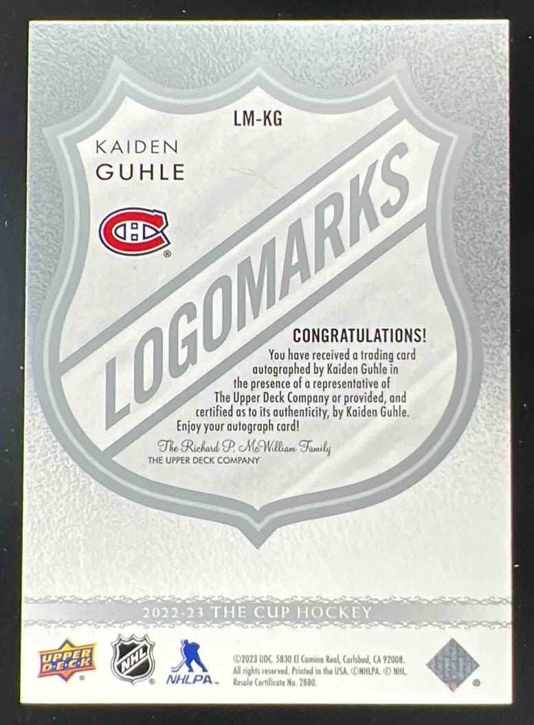 2022-23 The Cup Update LogoMarks Rookies #LM-KG Kaiden Guhle Autograph Auto