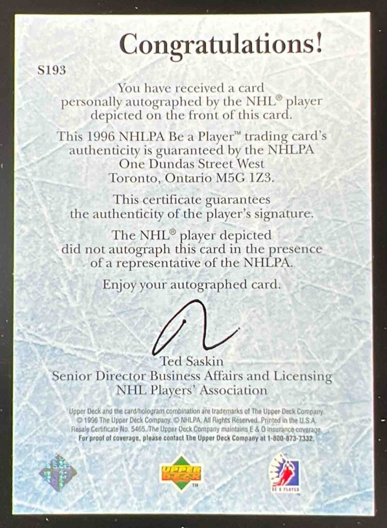 1995-96 Upper Deck Be a Player Autographs #S193 Chris Osgood Auto