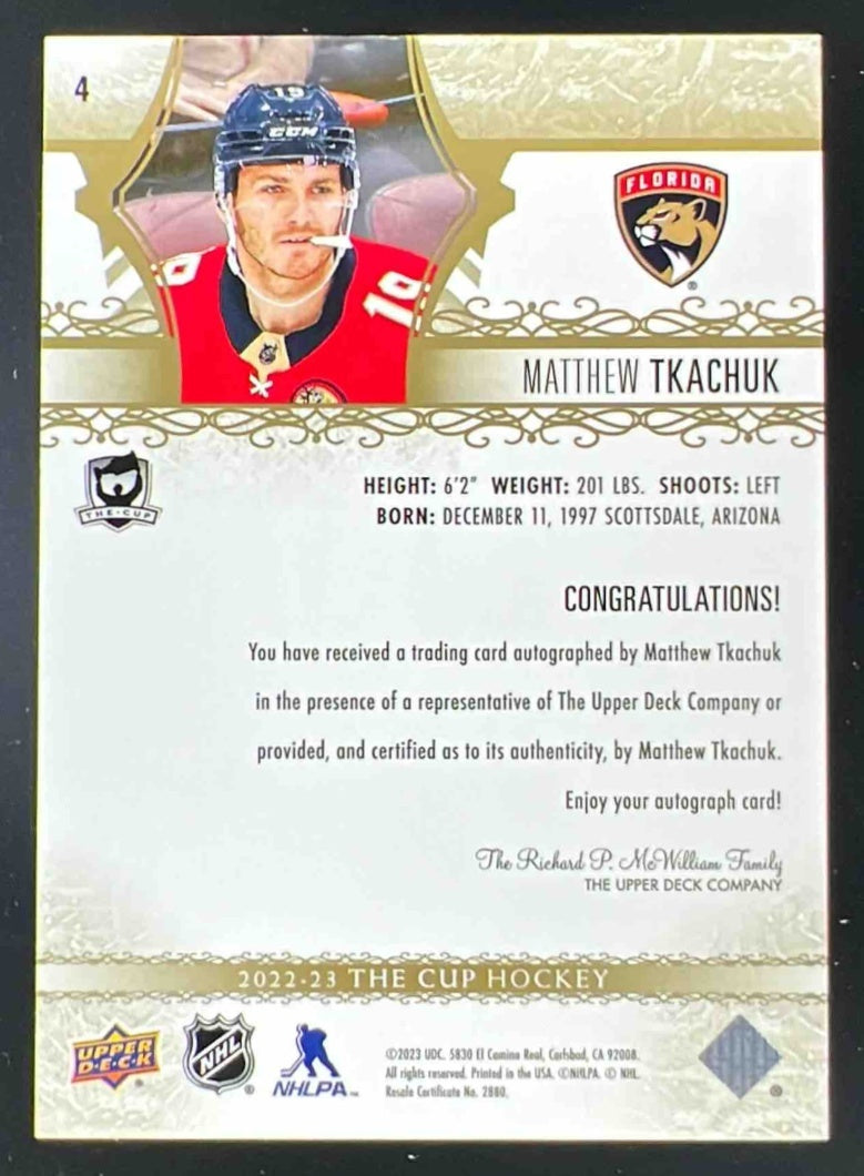 2022-23 The Cup Update Gold Spectrum Foil #4 Matthew Tkachuk Autograph Auto /12