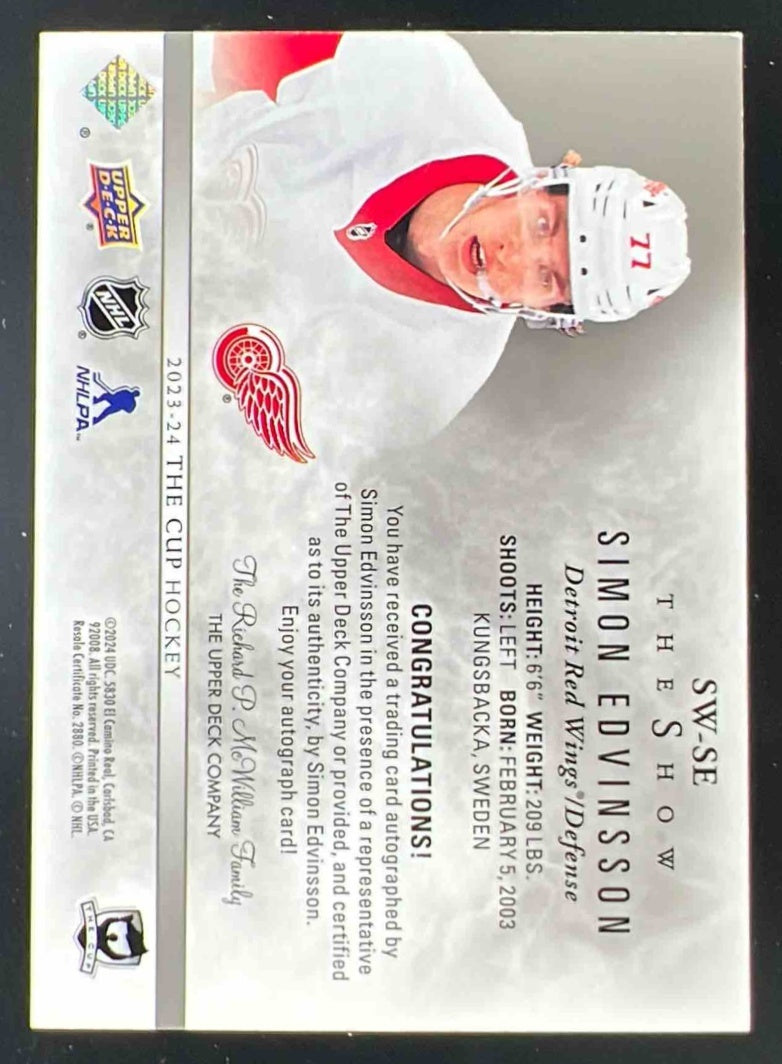 2023-24 The Cup The Show White Auto #SW-SE Simon Edvinsson Autograph Auto
