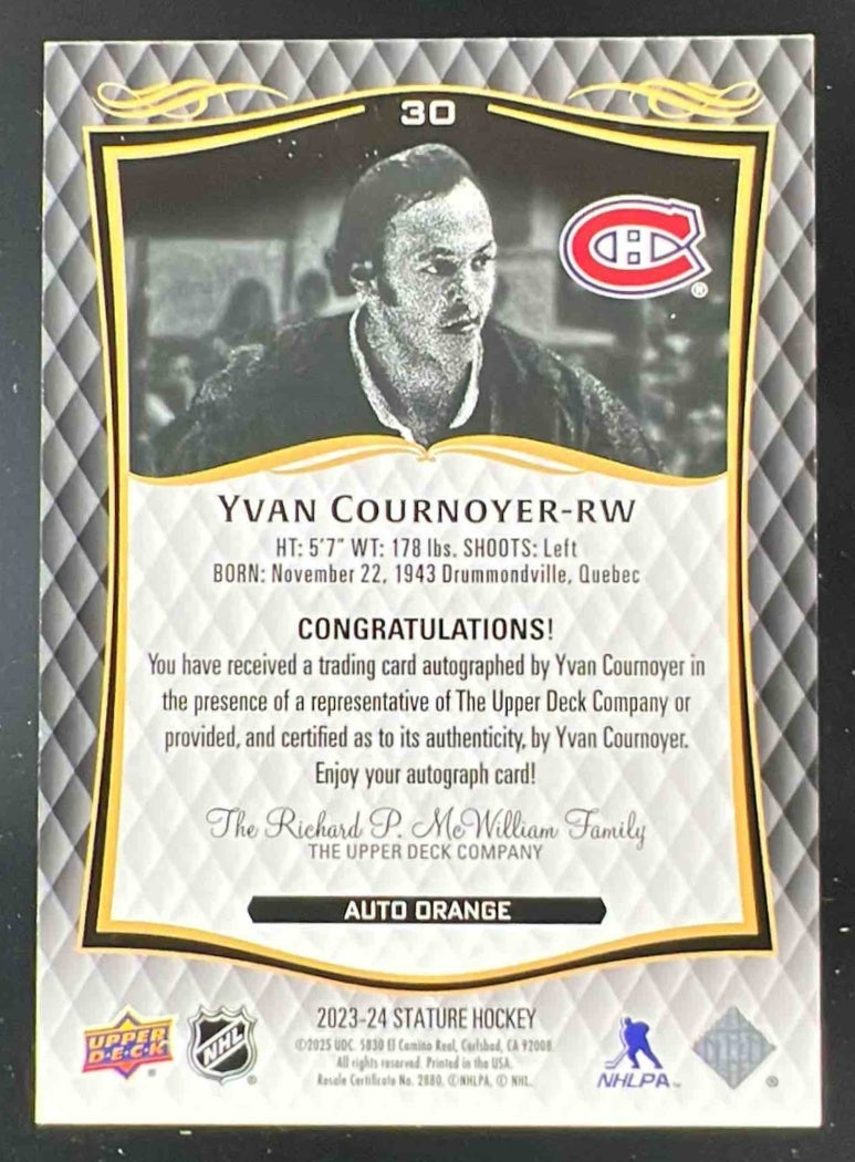 2023 Upper Deck Stature Update Auto Orange #30 Yvan Cournoyer Autograph Auto /50