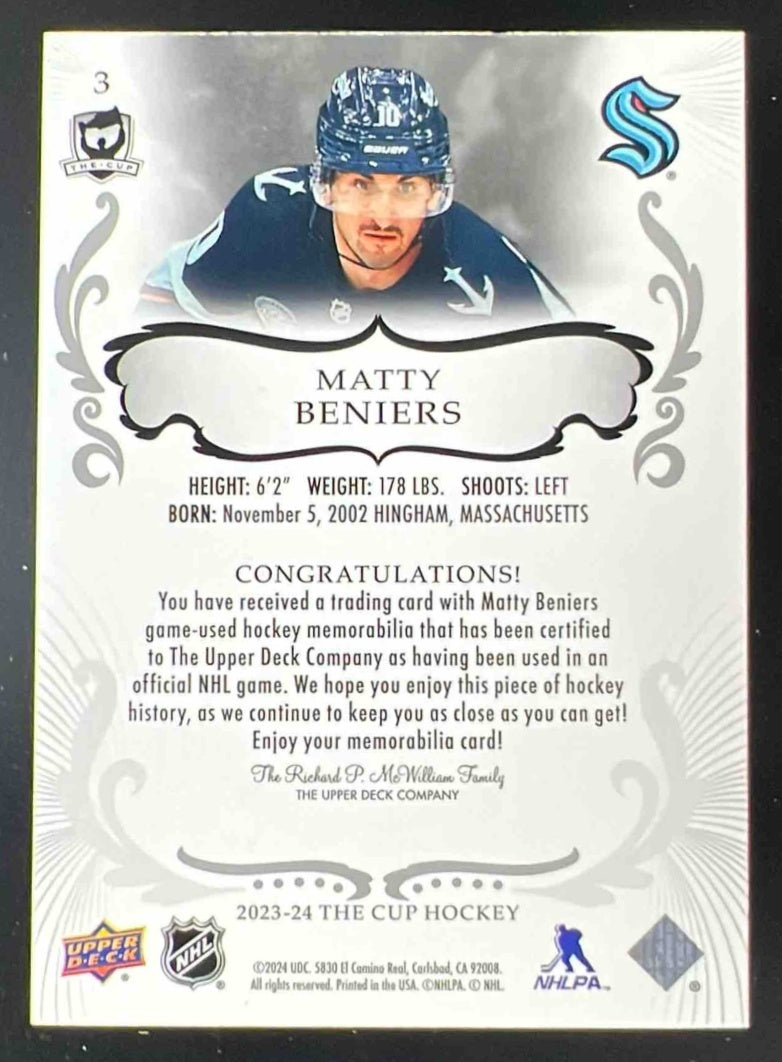2023-24 The Cup Gold Foil #3 Matty Beniers /8