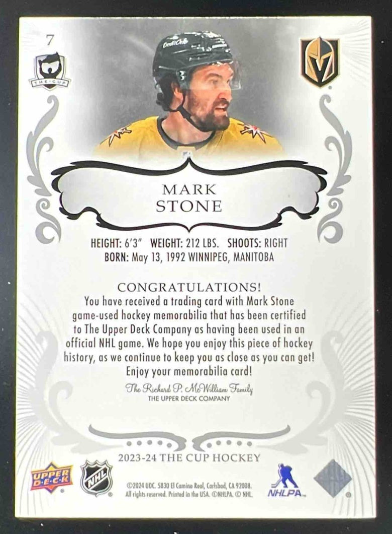 2023-24 The Cup Gold Foil #7 Mark Stone /8