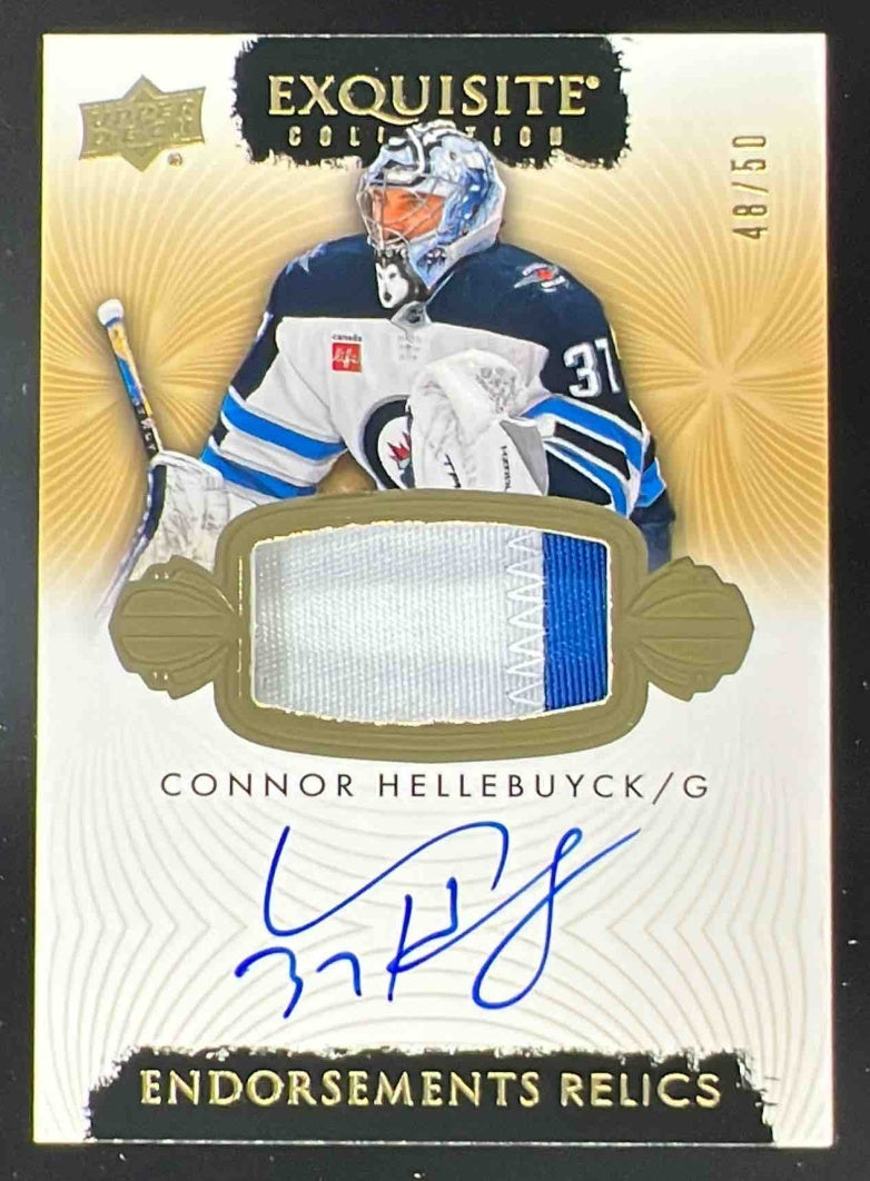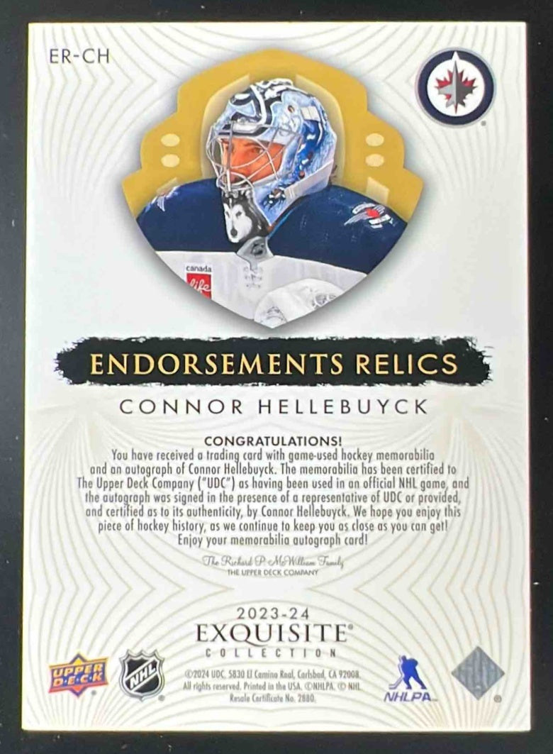 2023 Exquisite Collection Endorsements Relics #ERCH Connor Hellebuyck Auto /50