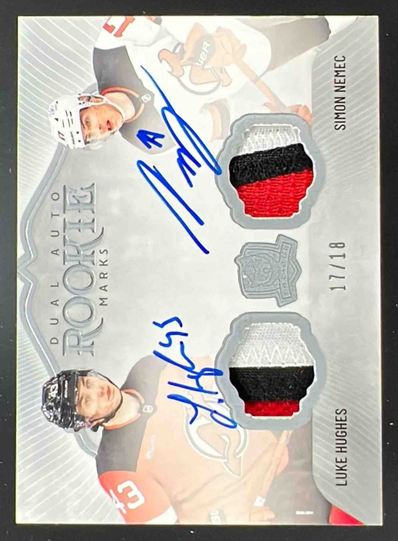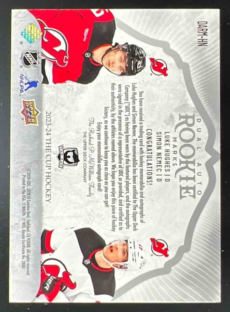 2023-24 The Cup Dual Auto Rookie Marks Luke Hughes Simon Nemec Auto /18