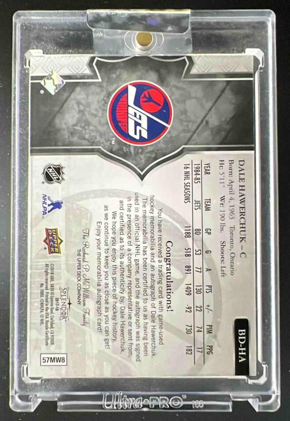 2017-18 Upper Deck Splendor Bordered Relic Silver #BD-HA Dale Hawerchuk Auto /22