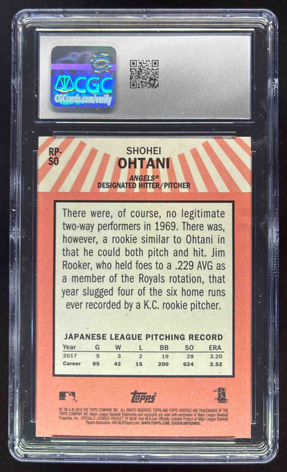 2018 Topps Heritage Rookie Performers #RP-SO Shohei Ohtani RC CGC 10
