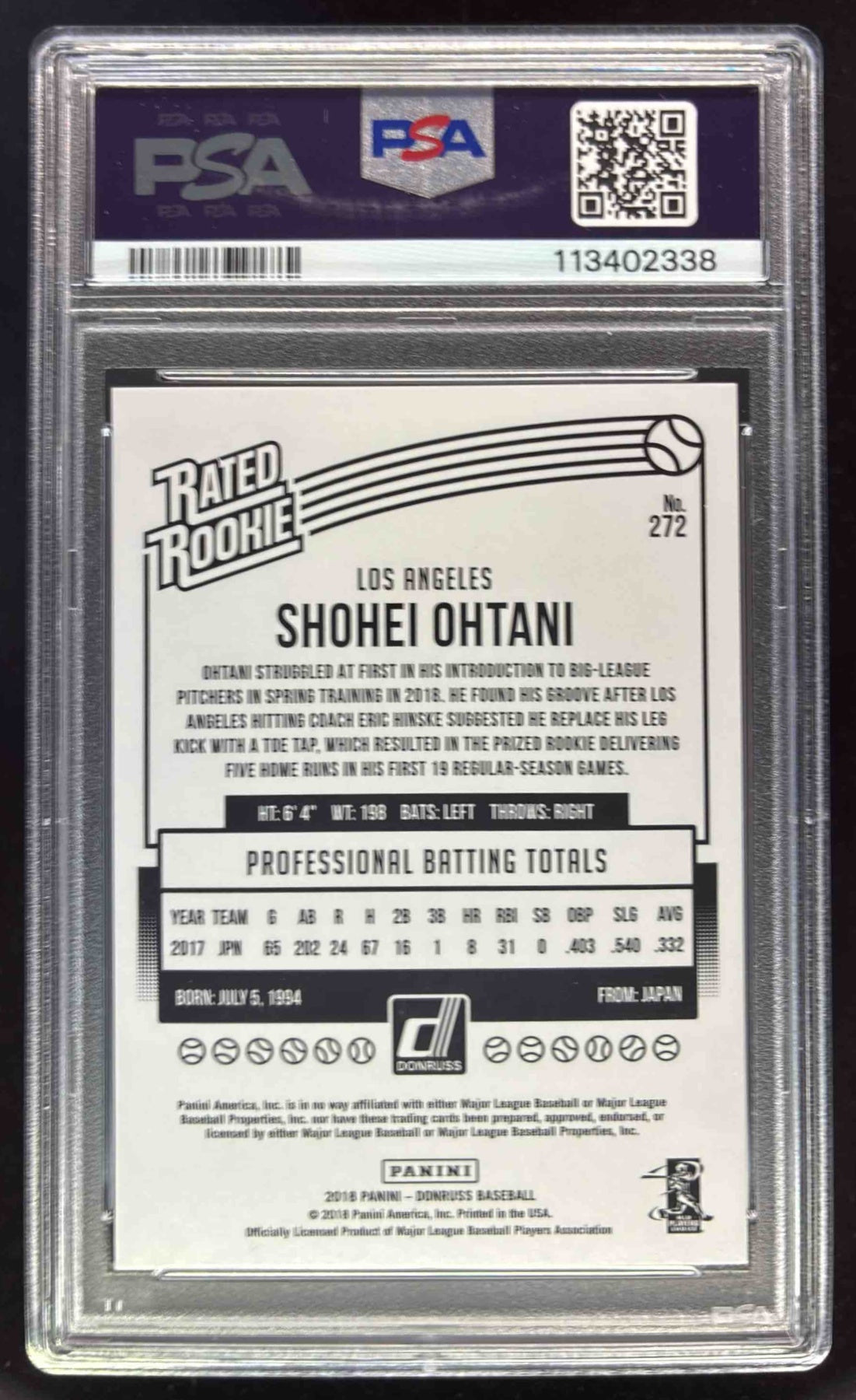 2018 Chronicles Donruss Season Stat Line #272 Shohei Ohtani RC /332 PSA 8.5