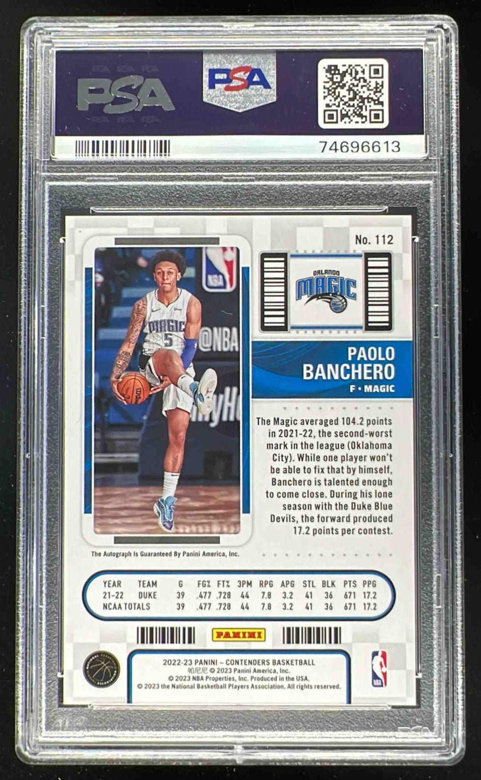 2022 Contenders Playoff Ticket #112 Paolo Banchero Autograph RC Auto /99 PSA 9