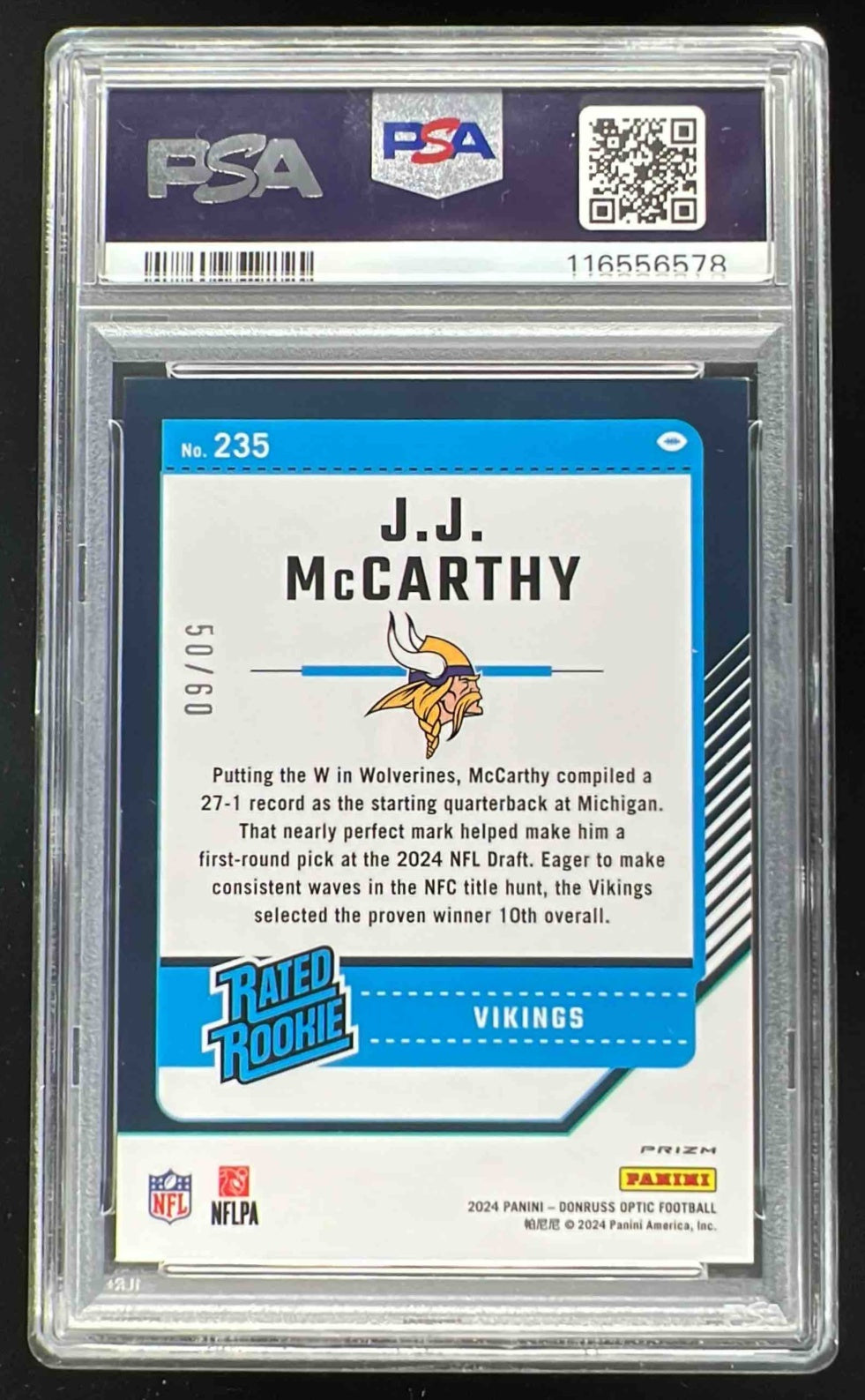 2024 Panini Donruss Optic Purple #235 J.J. McCarthy Rated Rookie /60 PSA 8