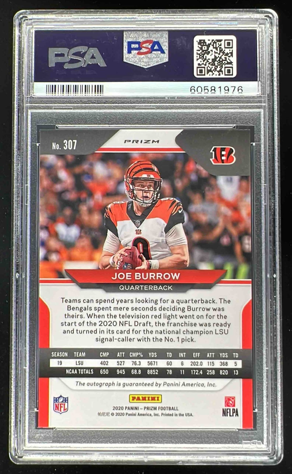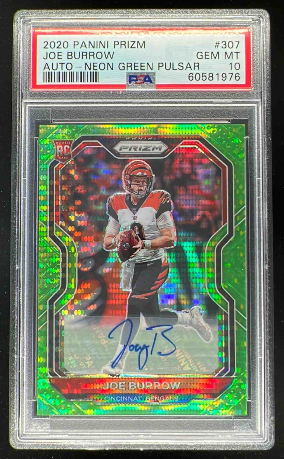 2020 Panini Prizm Rookie Prizm Neon Green Pulsar #307 Joe Burrow RC Auto PSA 10